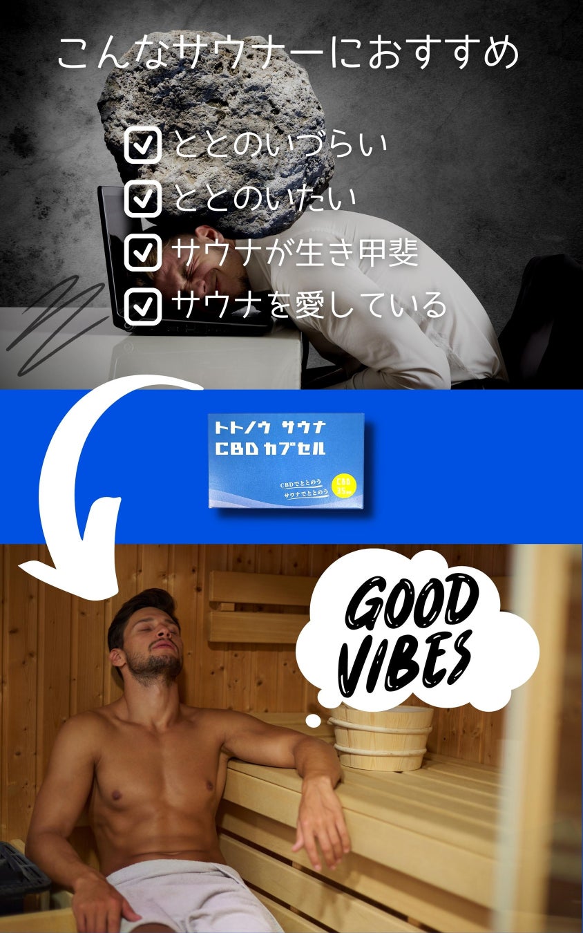 サウナの前の新習慣「ととのいサプリ」。トトノウ、トトノエ、CBDでアウフグースを受け止めろ!