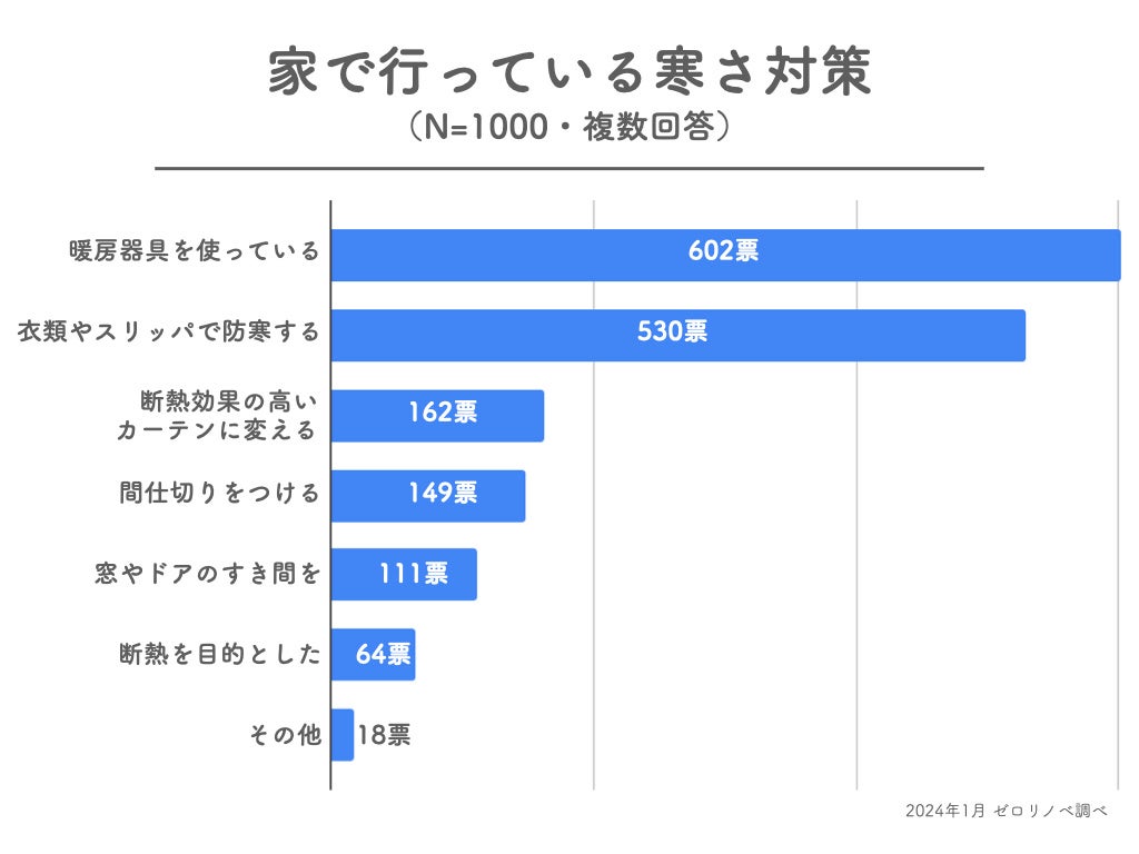 家で行っている寒さ対策を聞いたところ、以下の結果になりました。