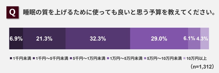 前回最も多かったのは「1万円~5万円未満」であったため今回の順位は逆転したものの、「10万円以上」と回答した人は前回調査と比較すると0.3ポイント増えており、依然として睡眠の質改善への意識の高まりを感じる結果となりました。