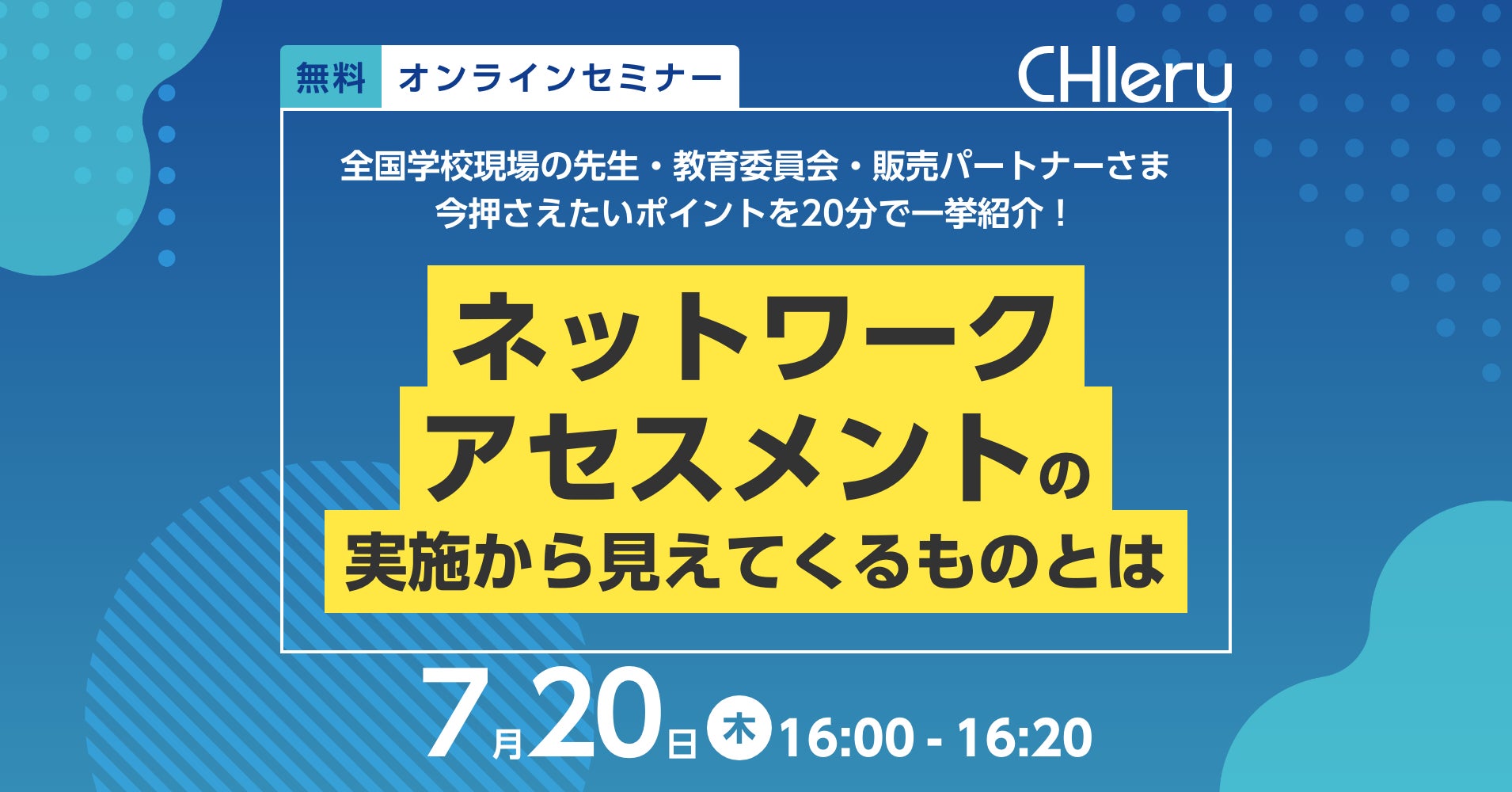 【無料セミナー/7月20日(木)】チエル、学校の通信環境の向上に向けたネットワークアセスメントについて学べるセミナーを開催〜ネットワークアセスメントの実施から見えてくるものとは~