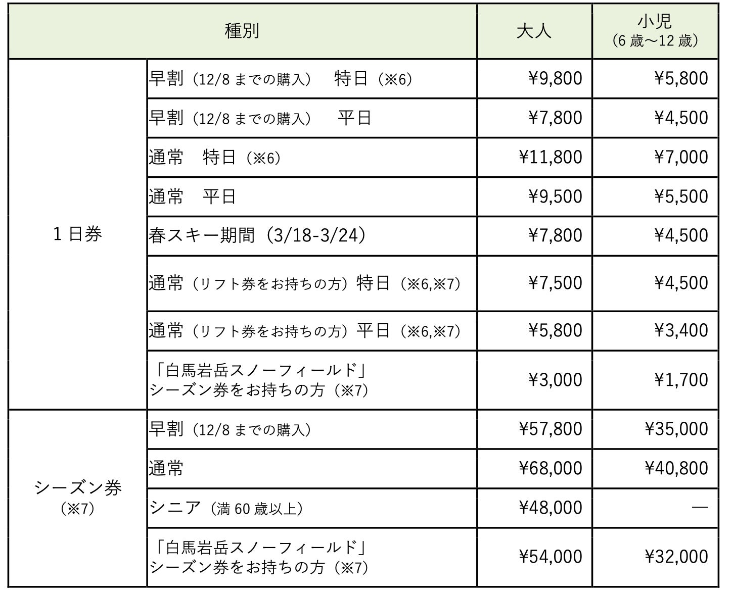 ※6...過去3シーズンの間に一度でも白馬岩岳スノーフィールドのシーズン券のご購入実績がある方、2022-23シーズンにHAKUBA VALLEYエリアのスキー場のシーズン券をお持ちだった方が対象