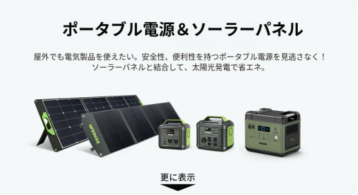 取扱い商品:ポータブル電源、ソーラーパネル、発電機、電動工具、照明器具、他