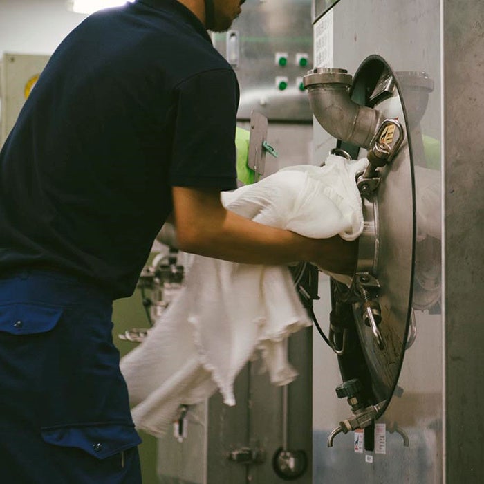 お客様から集められた回収衣料の中から、まだ十分に着られるものを厳選し、丁寧に洗濯・検品を実施した上で販売します。ウールやカシミヤはニットを専門に生産する東京・東雲の自社工場「イノベーションファクトリー」で洗濯し、しっかりと毛玉を取り除いてからご提供。アウターやデニム、カジュアルシャツなど、シンプルな
