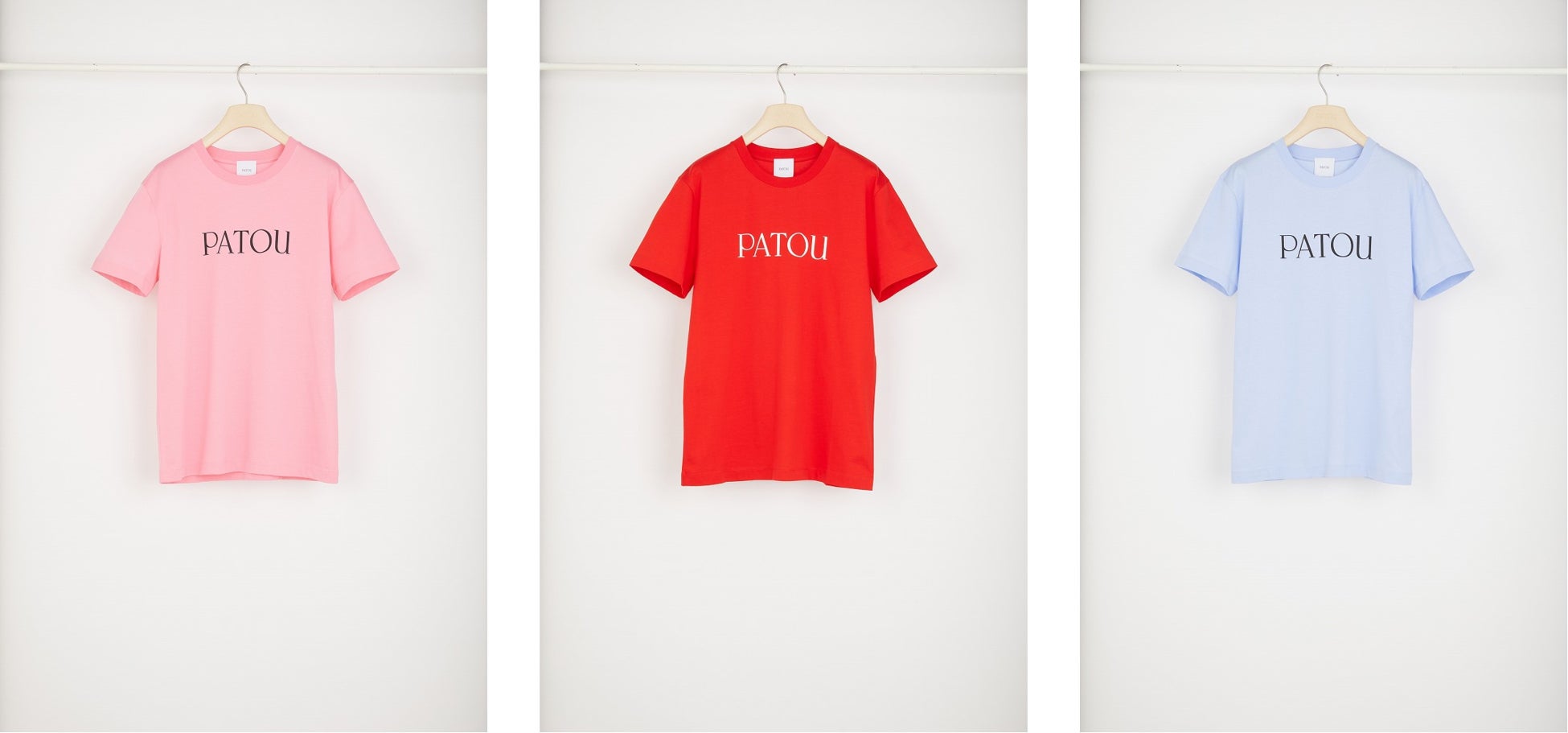 オーガーニックコットンを使用したPatouロゴTシャツ。定番の白と黒に合わせて、シーズンカラーのパトゥ ピンク、レーサーレッドに、アイスブルーの3色が新登場。