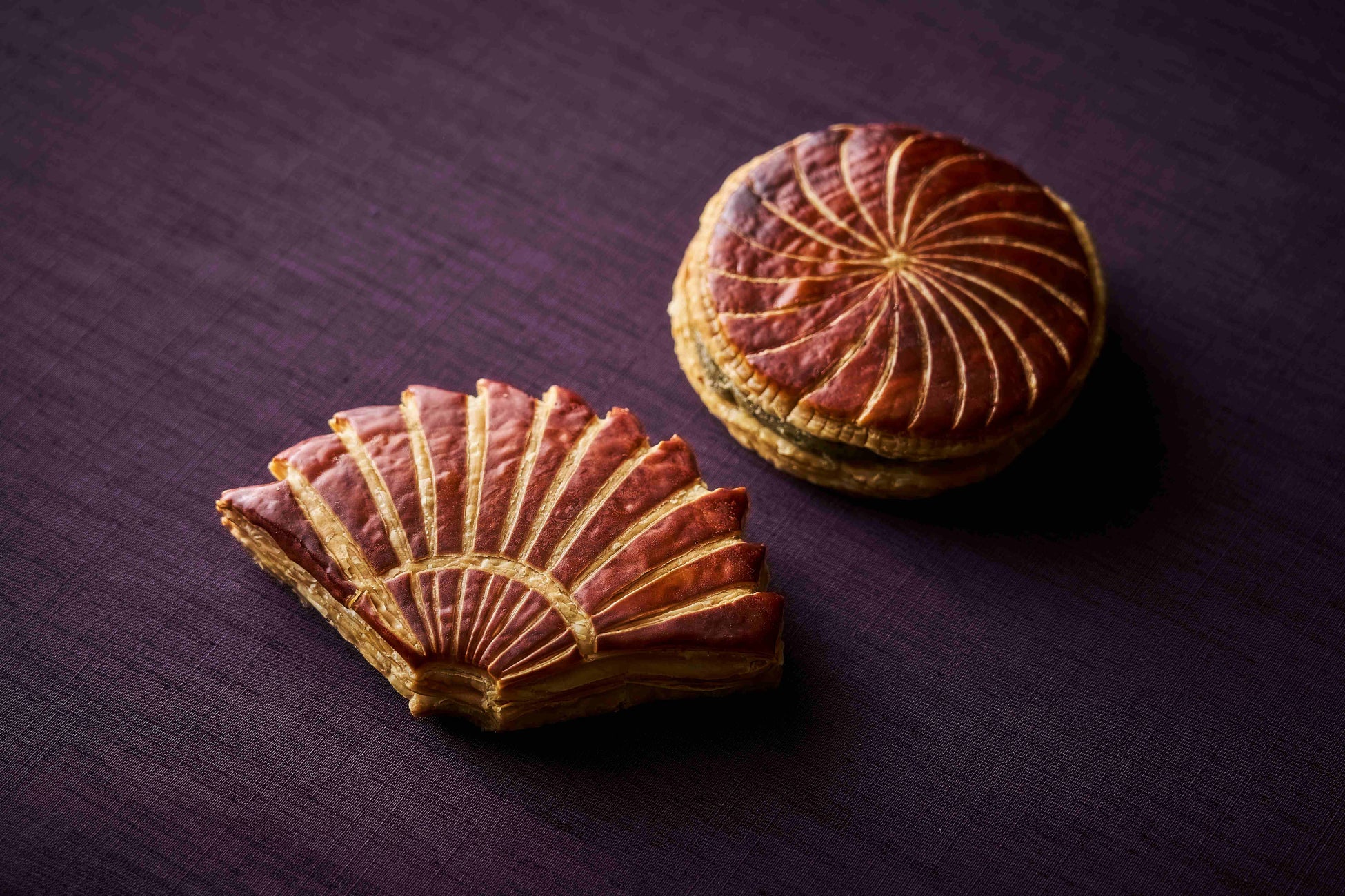 2024年は、一保堂茶舗のほうじ茶を贅沢に使用したガナッシュを加えた「京ほうじ茶のガレット・デ・ロワ」を限定 100 個ご用意。ほうじ茶の焙煎の香ばしさが口いっぱいに広がります。