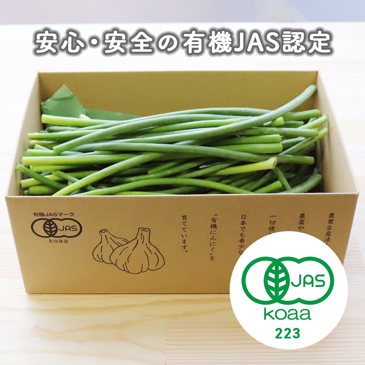 スーパーの店頭で冷凍野菜として売られていたり、総菜コーナーの中華料理に入っていたりと、時々目にするという方も多いだろう。だが、店頭に並ぶにんにくの芽はほとんどが中国産。国産にんにくで有名な青森県では、芽があまり伸びないうちに収穫を迎えるため、国産のにんにくの芽が出回ることは少ない。国産で、しかも有機栽培されたものとなると、市場にはほぼ出回らない、とても希少な存在だ。