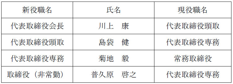 ※ 現常務取締役の知花健二については異動の予定はございません。