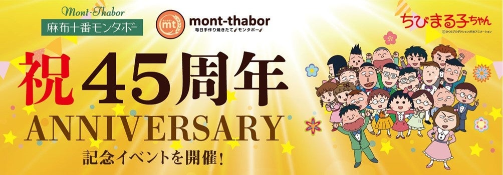 このたび、麻布十番モンタボーは創業45年を迎えることとなり、国民的人気キャラクター『ちびまる子ちゃん』と共にお祝いをする各種キャンペーンをとり行います。これまで支えていただいたお客様に感謝の気持ちが伝わる・これからのお客様にワクワクを与える、企画が盛り沢山です。