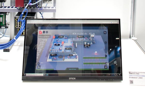 また昨今、需要が多いネットワークカメラと連携することで異常発生時のドライブレコーダーとして活用することも可能となっており、今回エプソンPCの高性能モデルであるJG150との組み合わせで展示をおこなっていただきました。