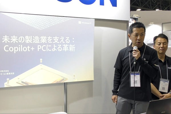 同社のブースでは、6月に発売予定であるエプソンのCopilot+ PCを先行展示していただきました。製造業の現場ではまだ多く活用されているとは言えませんが、やはり現場でAIを使って何ができるのかという点に注目されている方は大変多くいらっしゃるようでした。