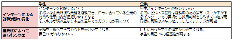 そして、社会のミスマッチという根本的な課題を解決するために「推薦状」という形で学生の経験したスキルと社会人基礎力を可視化することにしました。これにより企業側も学生がもっているであろう能力を今まで以上に判断しやすくなる他、どの規模の企業で業務を経験しているのかという重要指標も汲み取ることが可能となります。学生側も自己PRを企業に伝える際にもっともわかりやすい形でアピールすることが可能です。