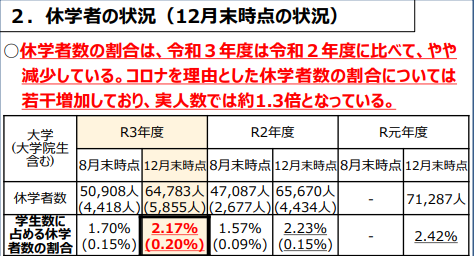 ※学生等の修学状況(中退者・休学者)に関する調査【令和3年12月末時点】」の調査結果について