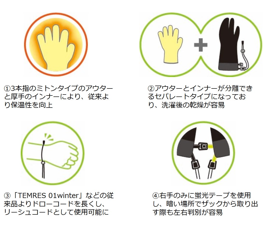 家庭用・産業用手袋の専業メーカーのショーワグローブ株式会社(本社:兵庫県姫路市、代表取締役社長:星野達也)は、厳冬期の雪山登山でも使える、3フィンガーミトンタイプの「TEMRES TFmitten(テムレス トリガーフィンガーミトン)」を2025年10月に発売いたします。