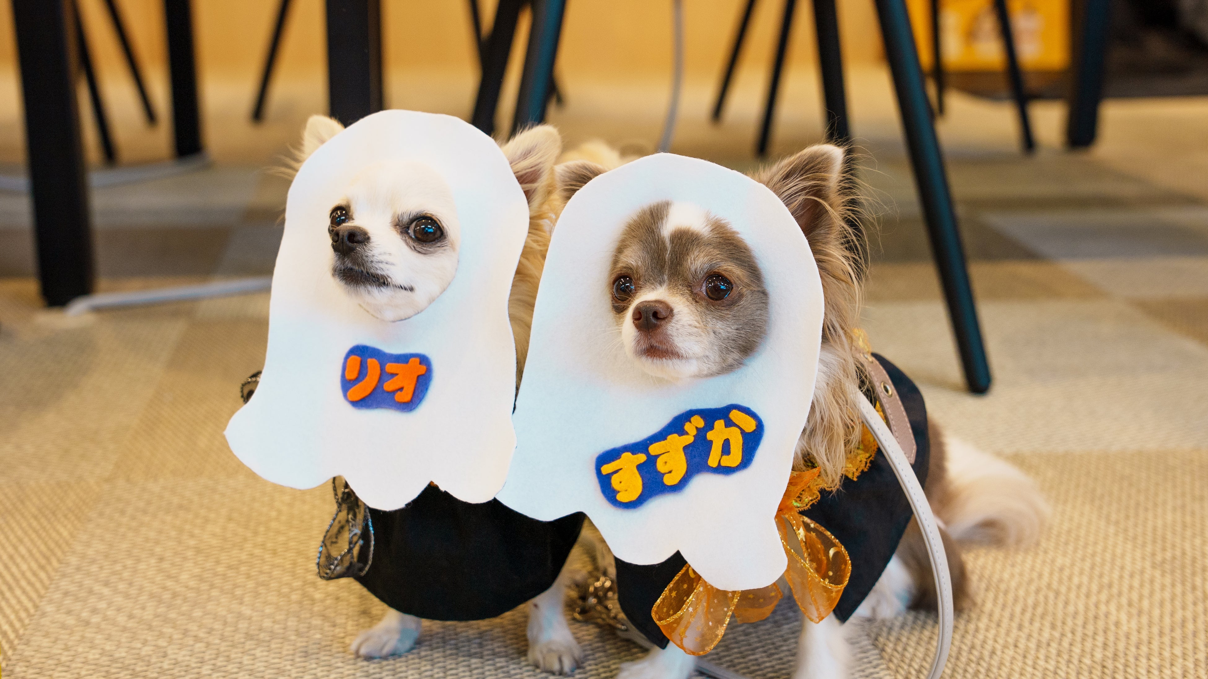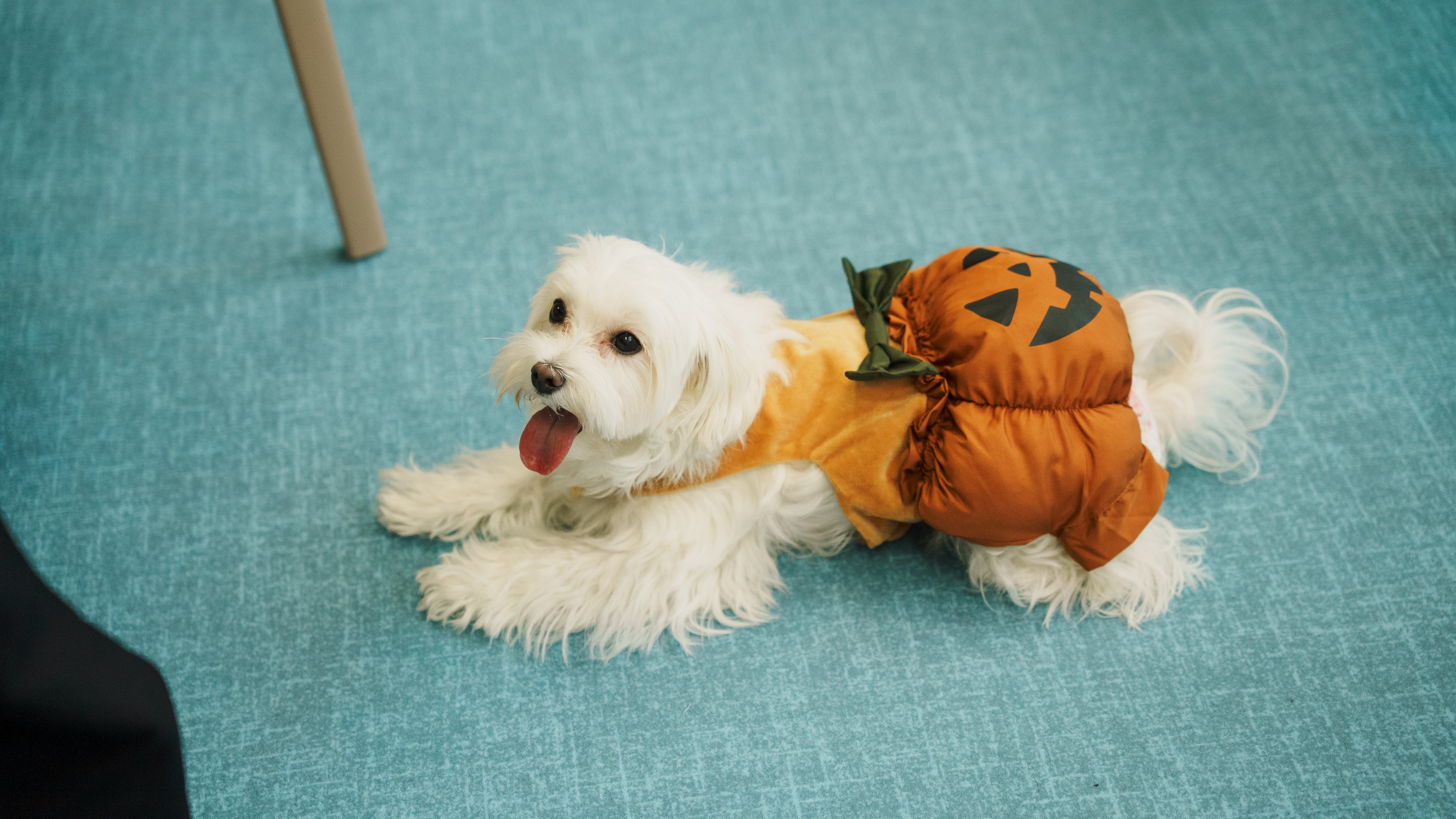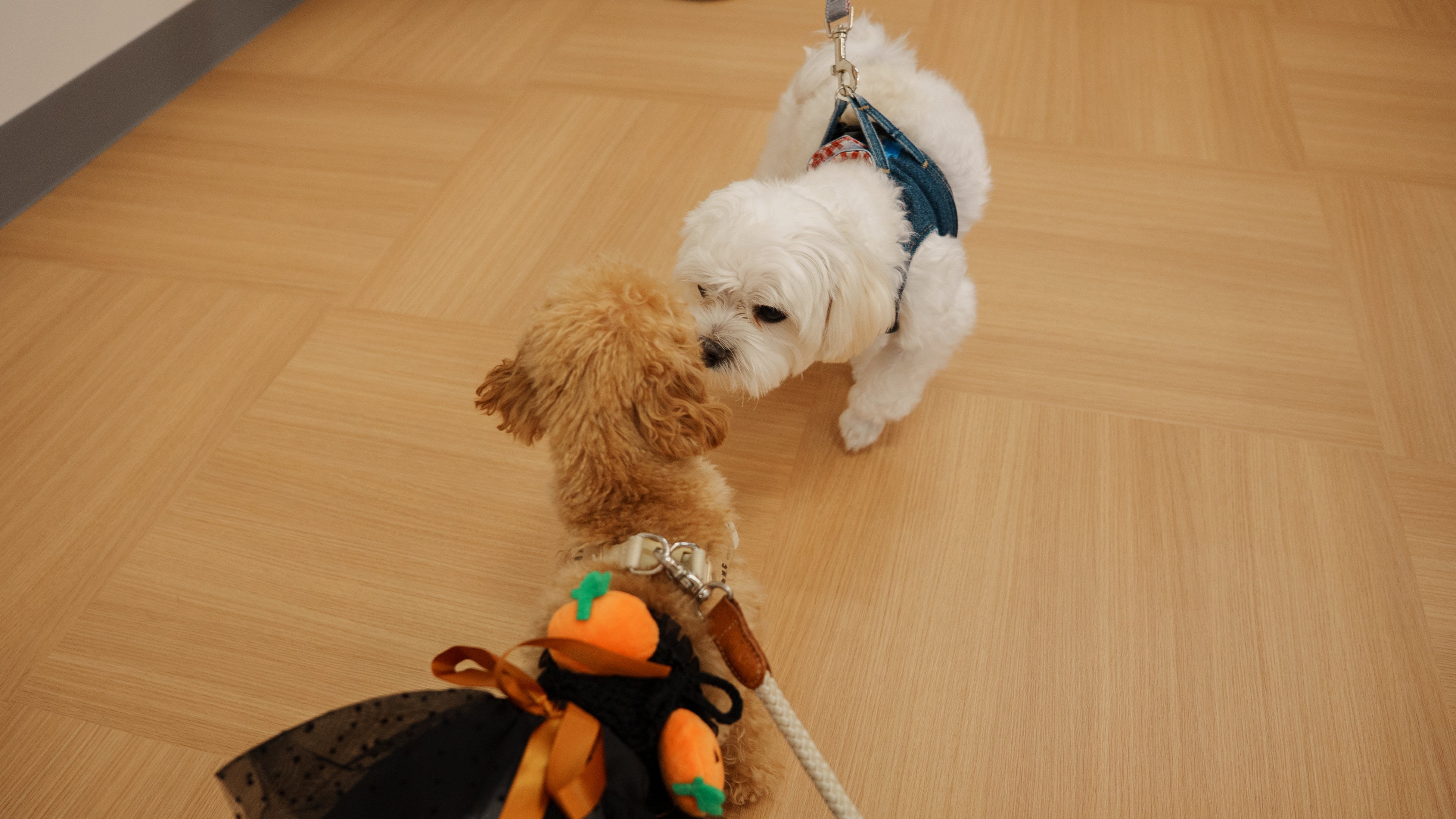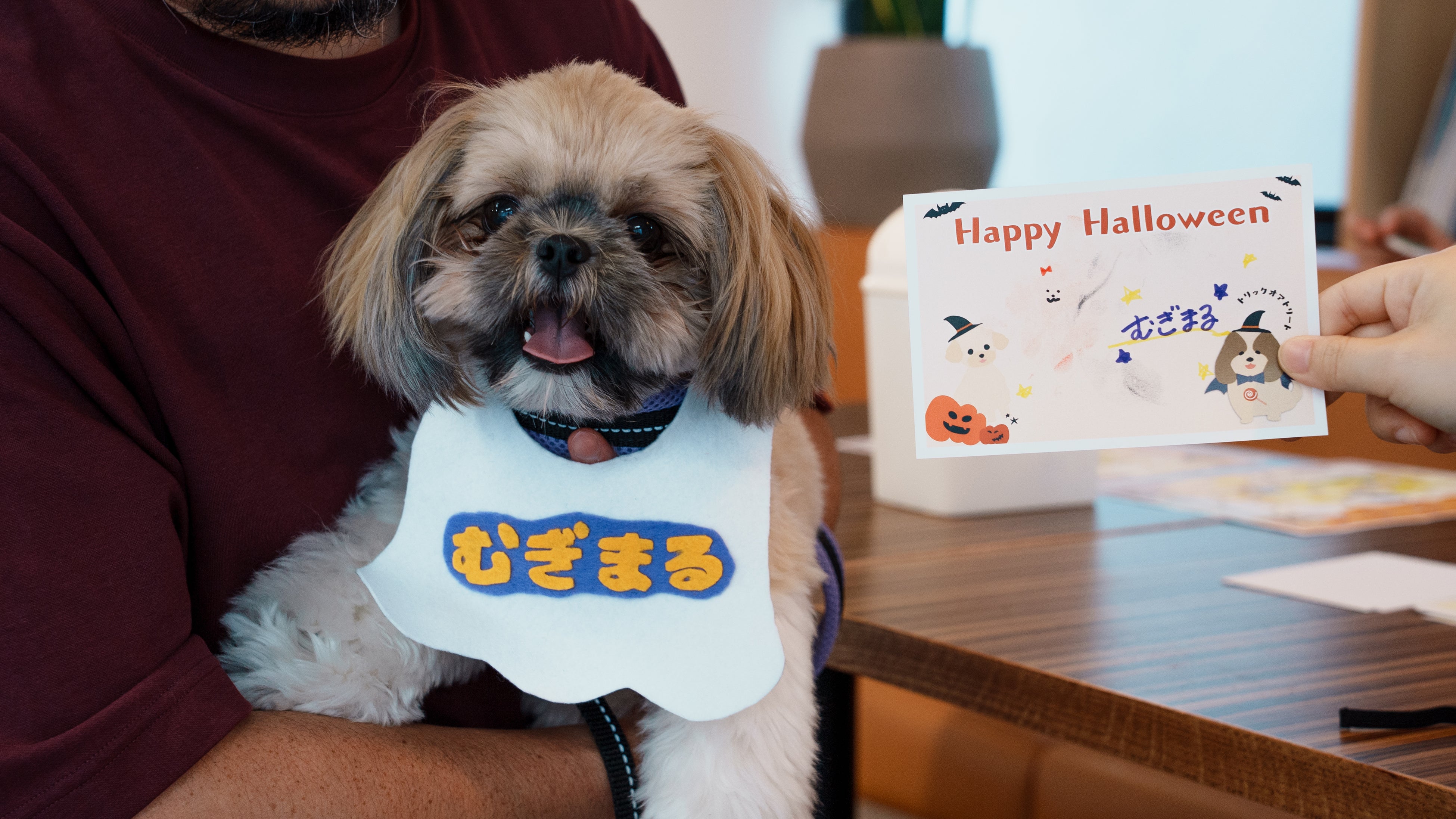 弊社の広報犬である「ゆず部長(シーズー)」「おもち(マルチーズ)」「うに(トイプードル)」「うめ(ポメラニアン)」「コロ丸(チワワ)」も、この日のために用意した特別なハロウィン仮装で参加。