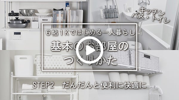 一人暮らしの部屋の「キッチン」「バス・洗面」「トイレ」「ランドリー」はとってもコンパクト。収納やお掃除のしにくさなど、悩みはつきません。お手頃価格のアイテムを使って、暮らしを便利で快適にするコツをご提案します。