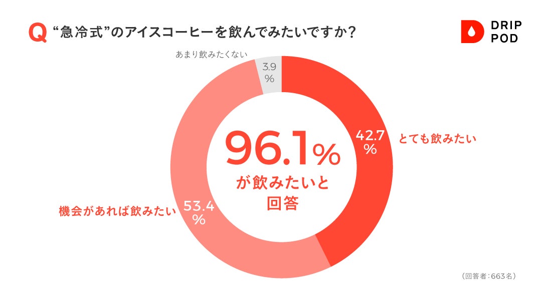 - 手間暇かからず“急冷式”の美味しいアイスコーヒーが飲めるなら・・・!96.1%が「飲みたい」と回答