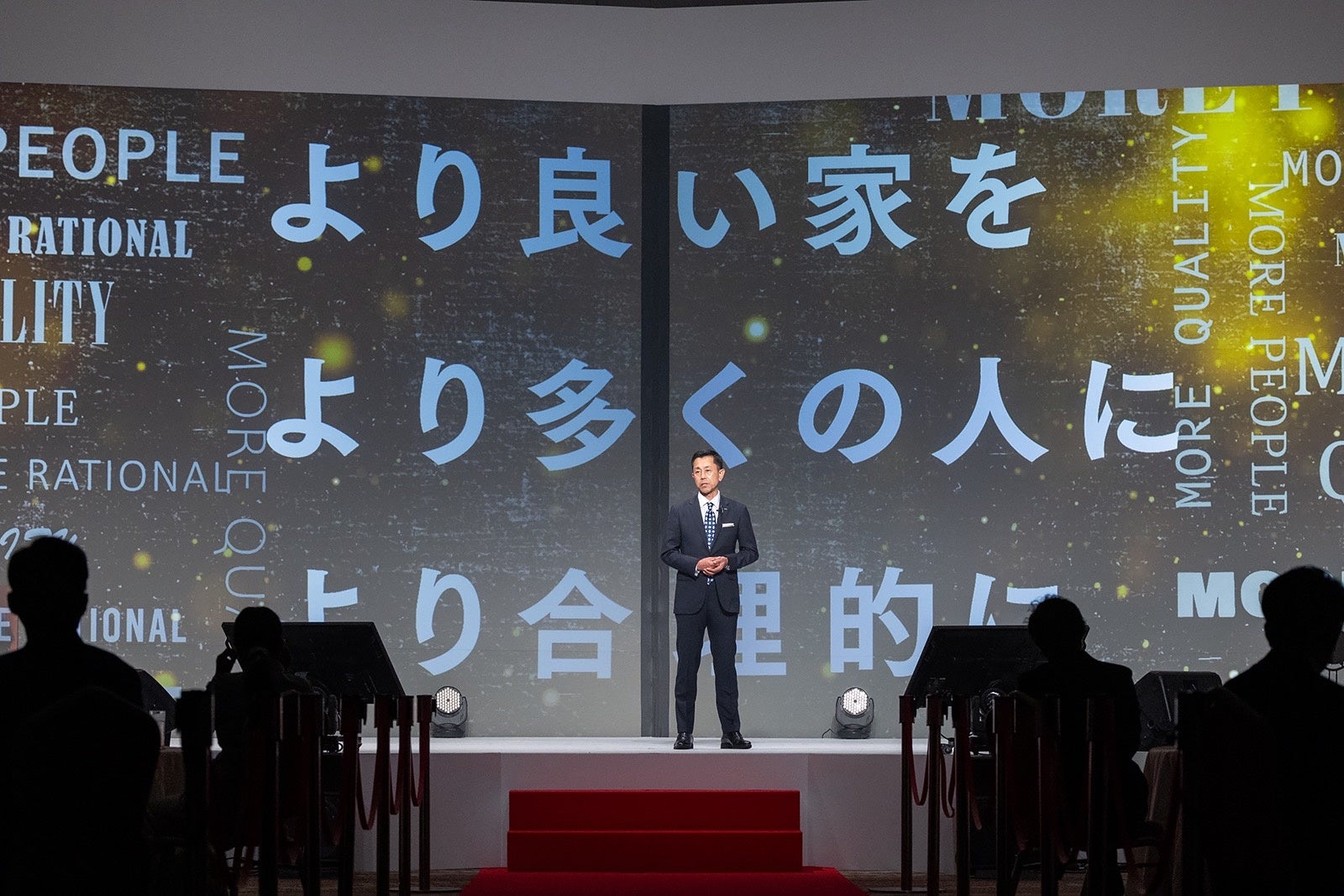 また、「より合理的に」とは、家を提供する仕組みを合理的にすることで「良い家」の提供につなげるという意味です。我々が家を提供する「FCシステム」は、地域に根差した加盟店様と本部が協働して家づくりに取り組むことでお客様に「良い家」を提供しています。この合理的な家づくりを、本部と加盟店が一体となり、さらに進化させ新たなFCシステムを創り上げていきましょう。