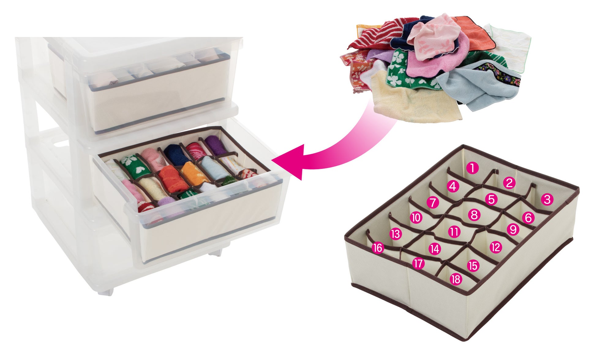 「炭消臭 仕切収納ボックス 18ポケット」