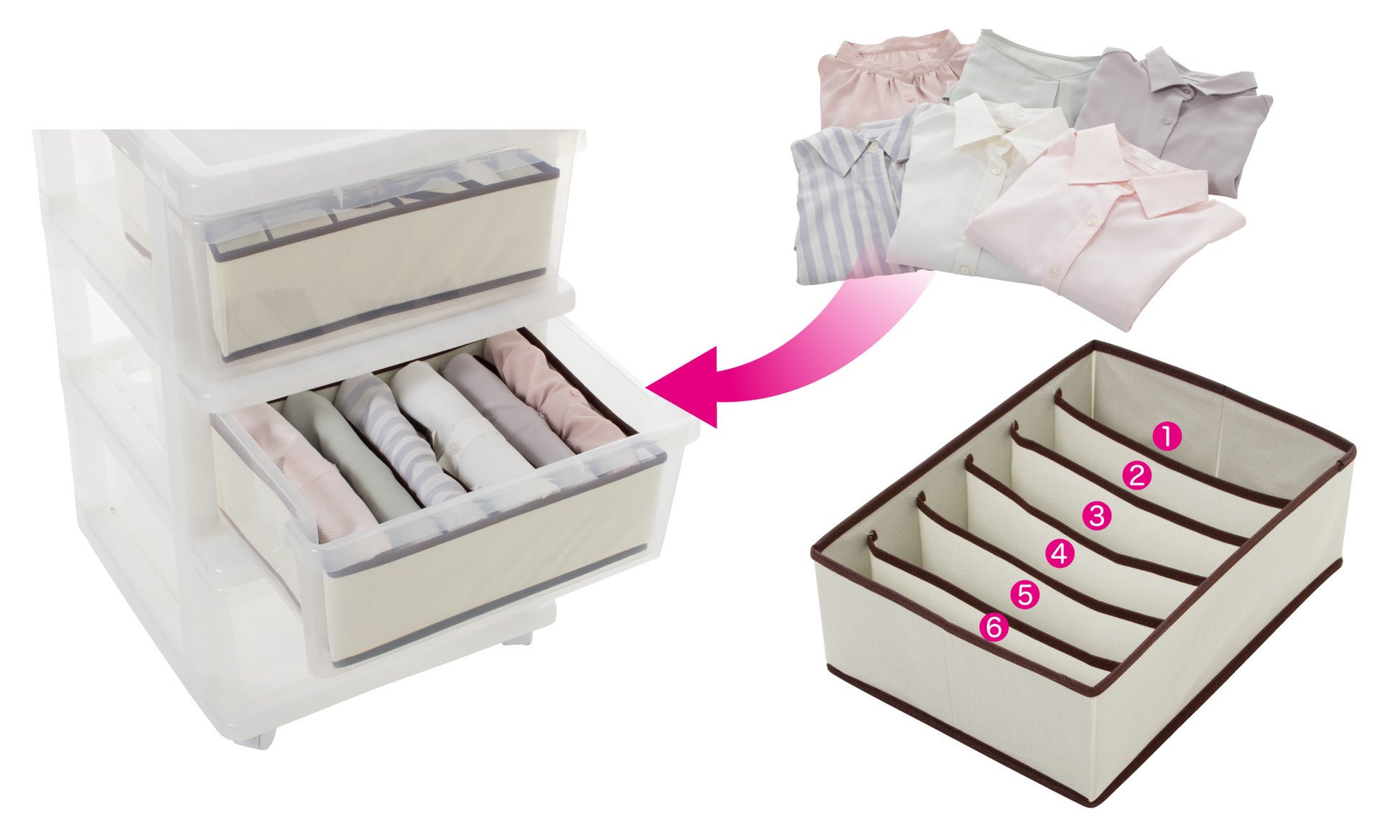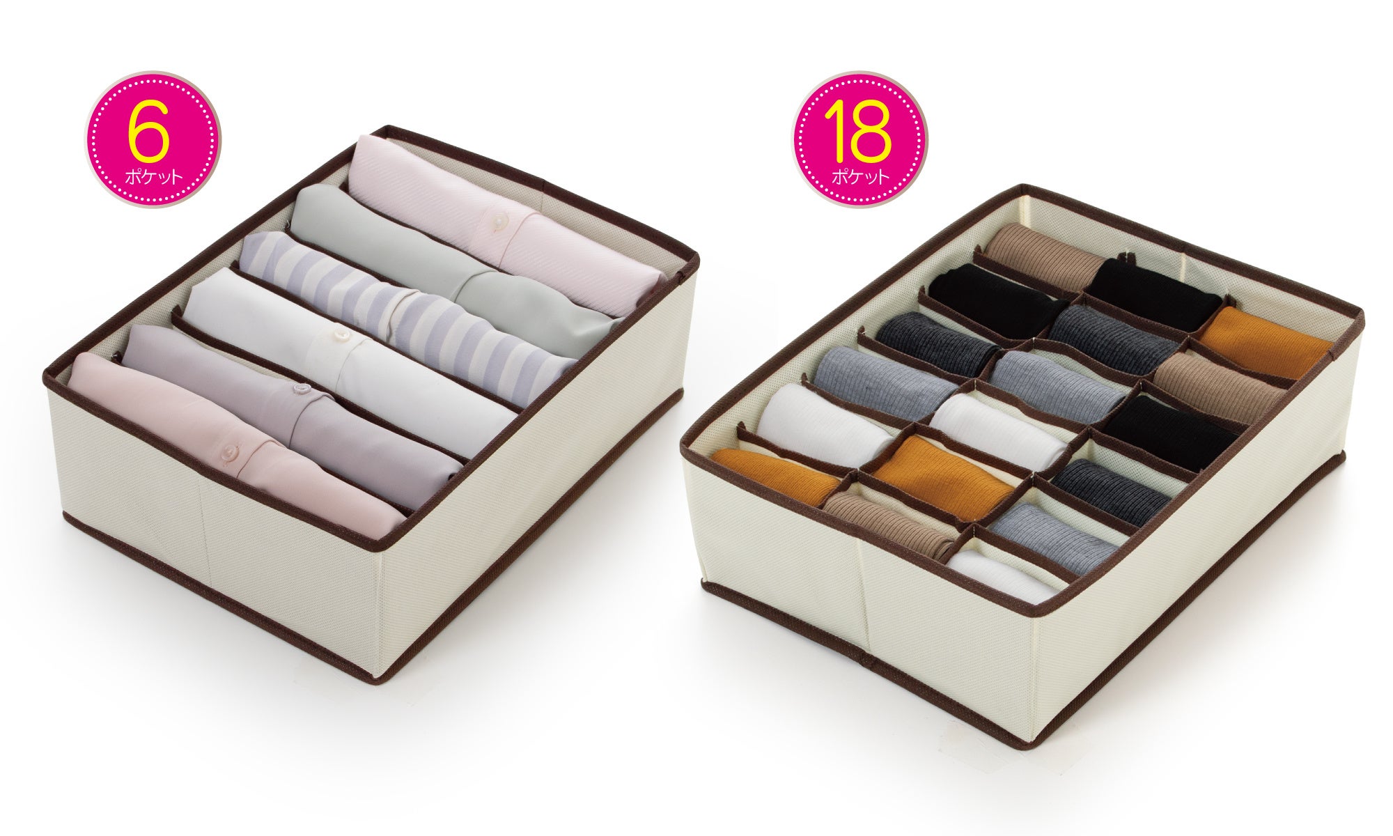- 衣類や小物の整理に便利な仕切収納ボックス