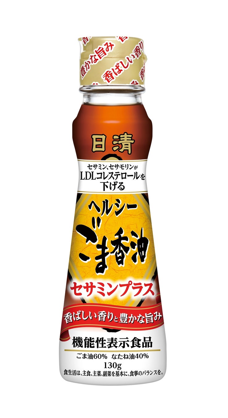 昨年春、コレステロール対策の機能性表示食品として発売した「日清ヘルシーごま香油セサミンプラス」シリーズ。新たに130gをラインアップに加え、小容量ニーズにお応えします。