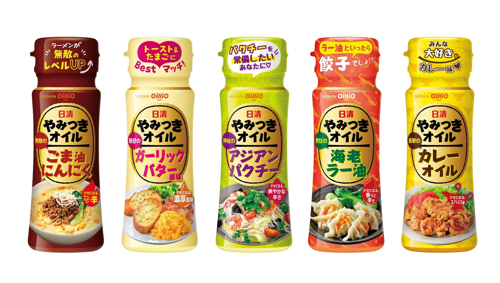 この「日清やみつきオイル」シリーズに、新たに「衝撃の」カレーオイルを追加してラインアップを拡充します。