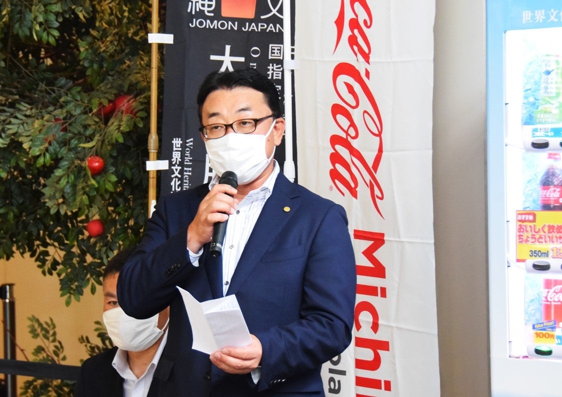 みちのくコカ・コーラボトリング株式会社(本社: 岩手県盛岡市、代表取締役社長: 谷村 広和、以下「当社」)は、弘前駅に世界文化遺産登録「北海道・北東北の縄文遺跡群」PR自動販売機(以下「縄文PR自販機)を設置し、7月27日(水)に披露会を開催いたしました。