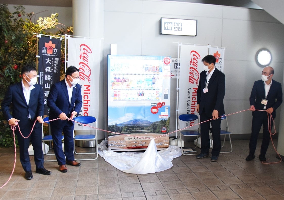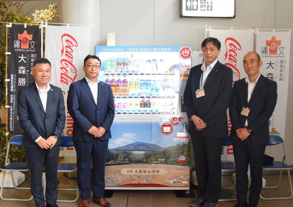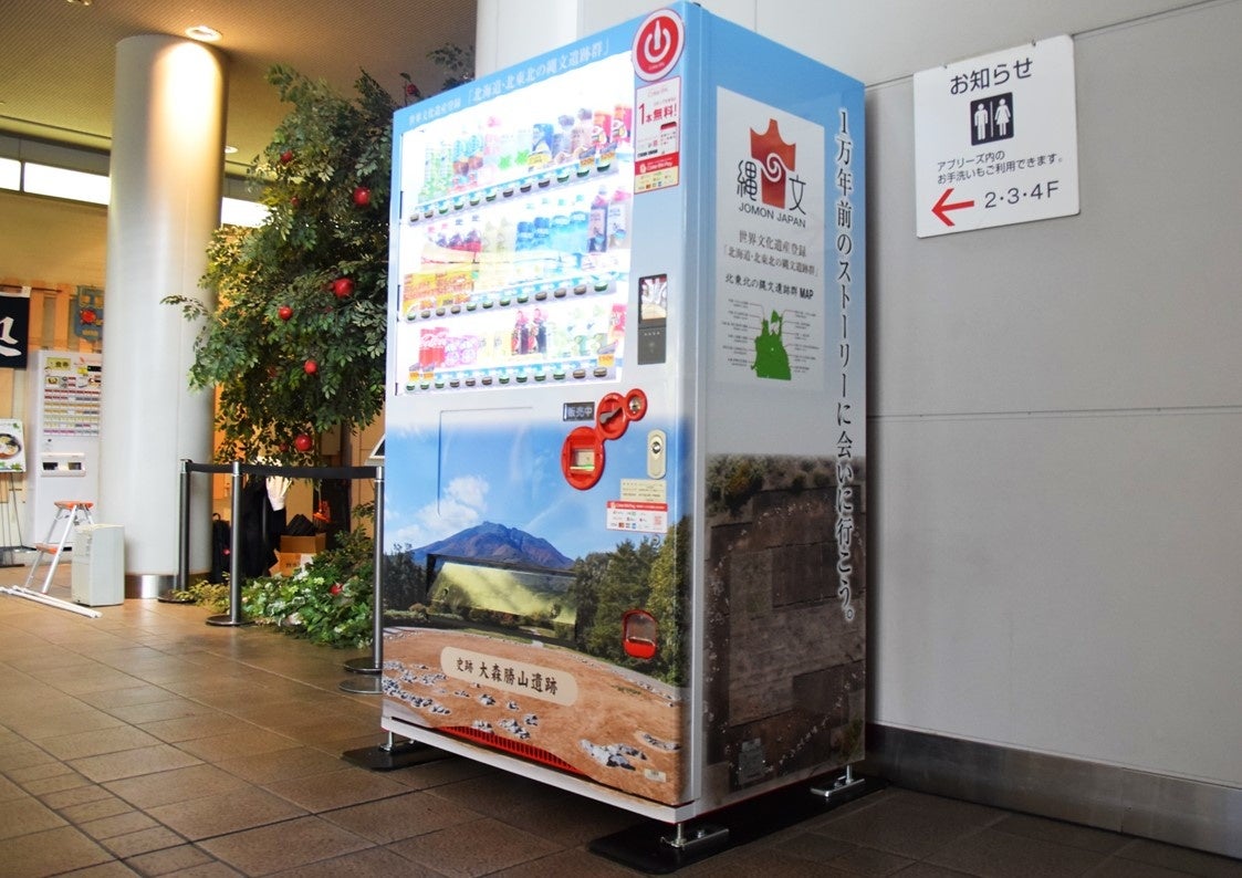 みちのくコカ・コーラボトリング、弘前駅に世界文化遺産登録「北海道・北東北の縄文遺跡群」PR自動販売機を設置
