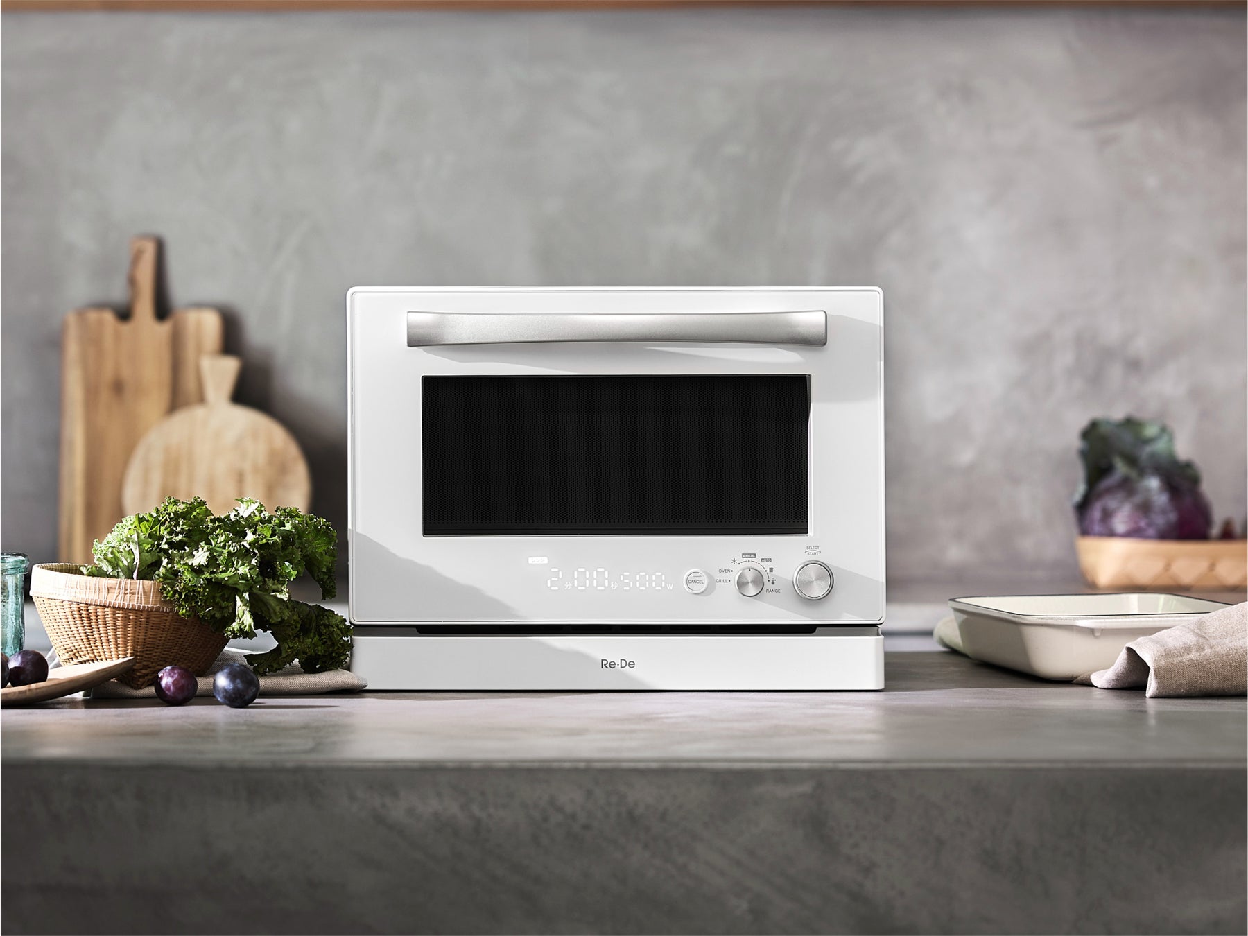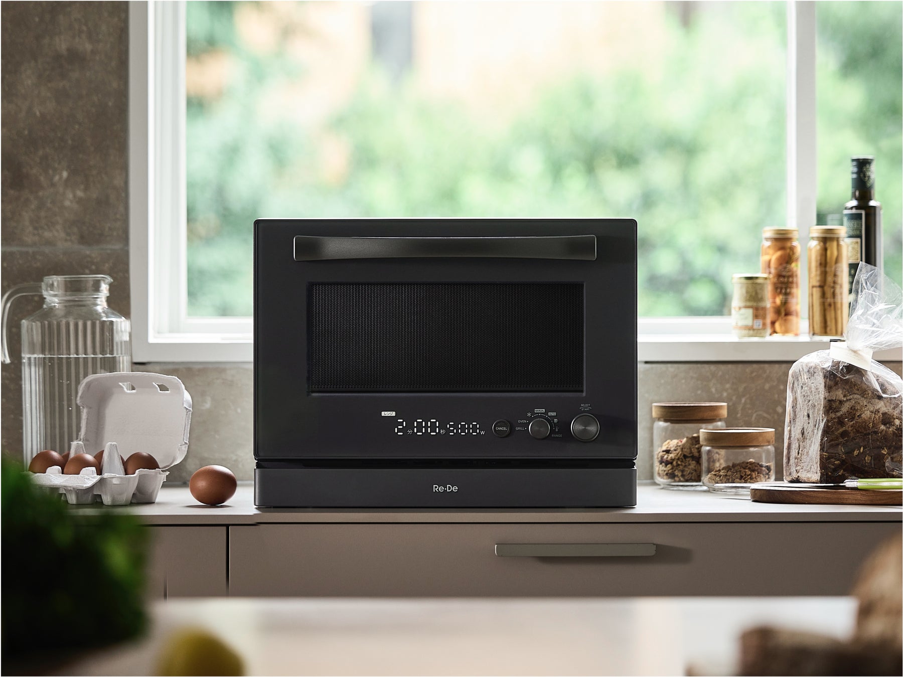 Re・De Rangeは、料理の真髄にフォーカスした設計で、おいしさと心地よさを同時に実現した、プレミアムコンパクトなオーブンレンジです。20Lとコンパクトながら、複雑な料理ごとのモードを大胆に削ぎ落とし、自由なコントロールや料理を楽しむ機能を搭載。毎日使えて、上質で満足感の高い使い心地を追求しました。ビルトインオーブンレンジのようなシームレスな佇まいと、直感的な使い心地をきわめたデザインが、置くだけでキッチン空間を美しく進化させます。