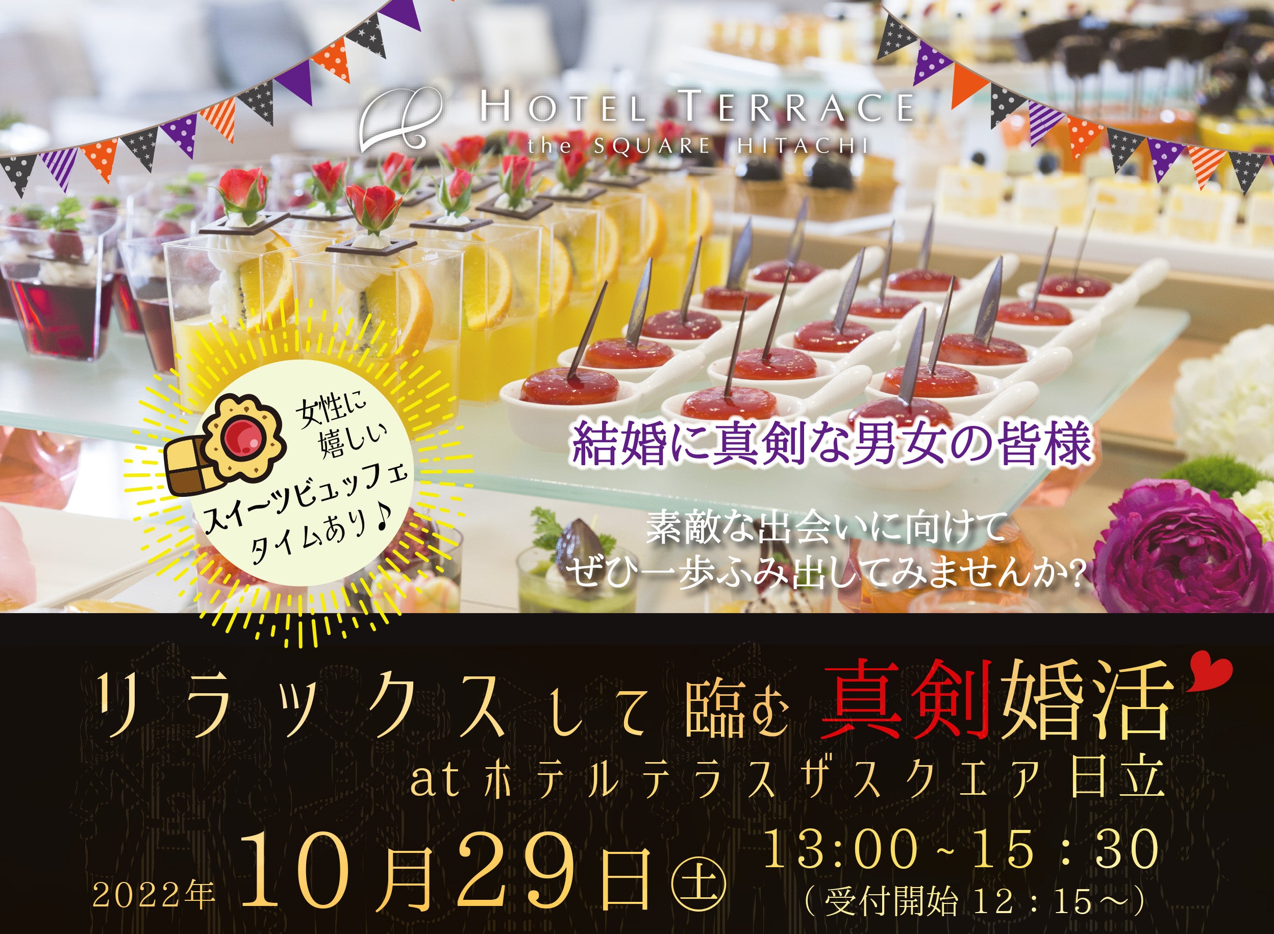 【ホテルテラスザスクエア⽇⽴】女性に嬉しいハロウィンスイーツビュッフェ付き!少人数で出会いを生み出す『リラックス婚活』を開催