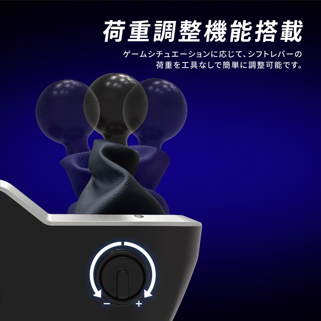 ゲームシチュエーションに応じて、シフトレバーの荷重を工具なしで簡単に調整可能です。