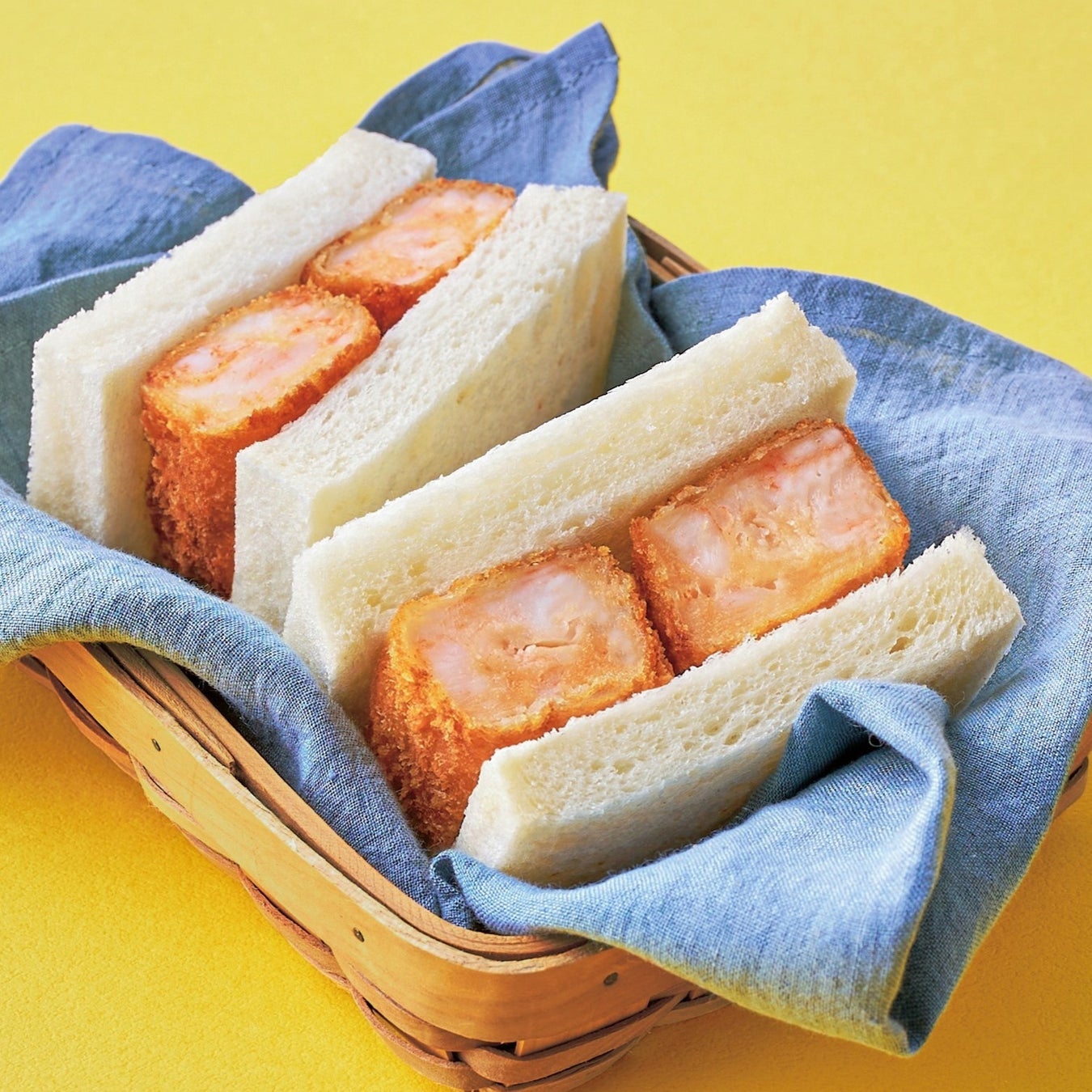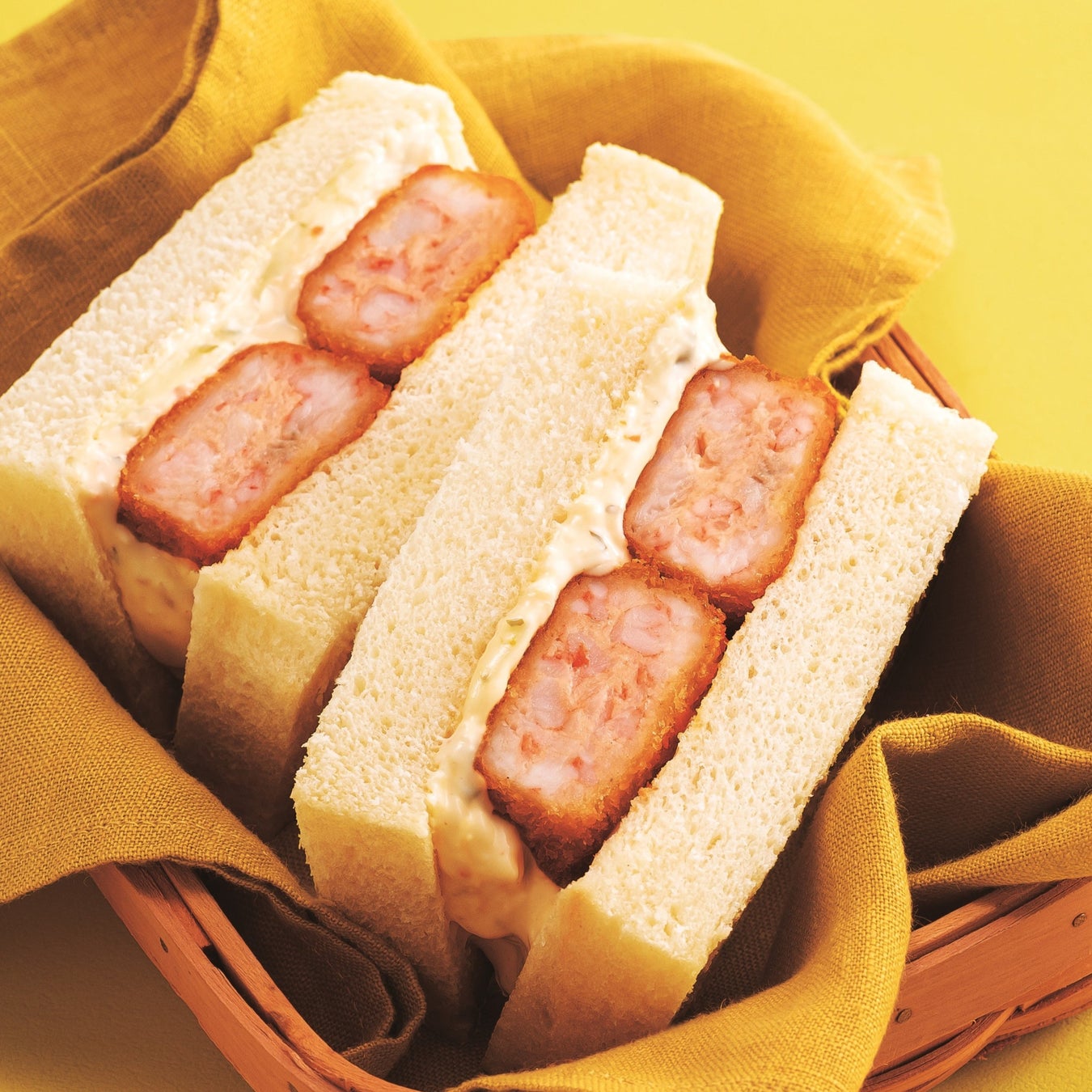 特徴:サクッと衣にぎゅっと詰まった、海老の身と帆立の旨みをこだわりの一等小麦粉食パンでサンド!