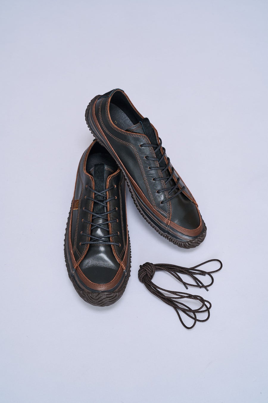 また、シューレースは替え紐付きで、競馬のジョッキーの勝負服から連想した柄をブラウンとブラックのツートーンカラーで表現しました。