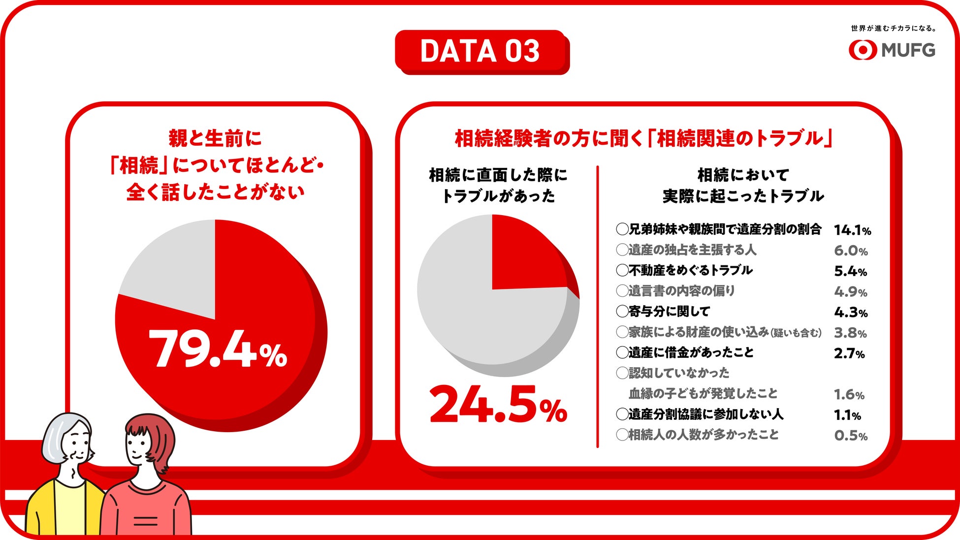 約8割が生前のうちに相続について話しておらず、実際に4人に1人が相続周りのトラブルを経験。