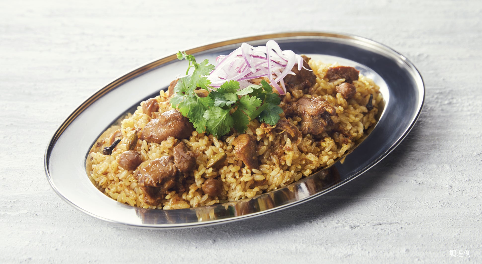 具材にはスパイスでマリネしてから焼き上げた鶏肉を使い、 焼いたお肉の香ばしさもご飯に染み込みます。