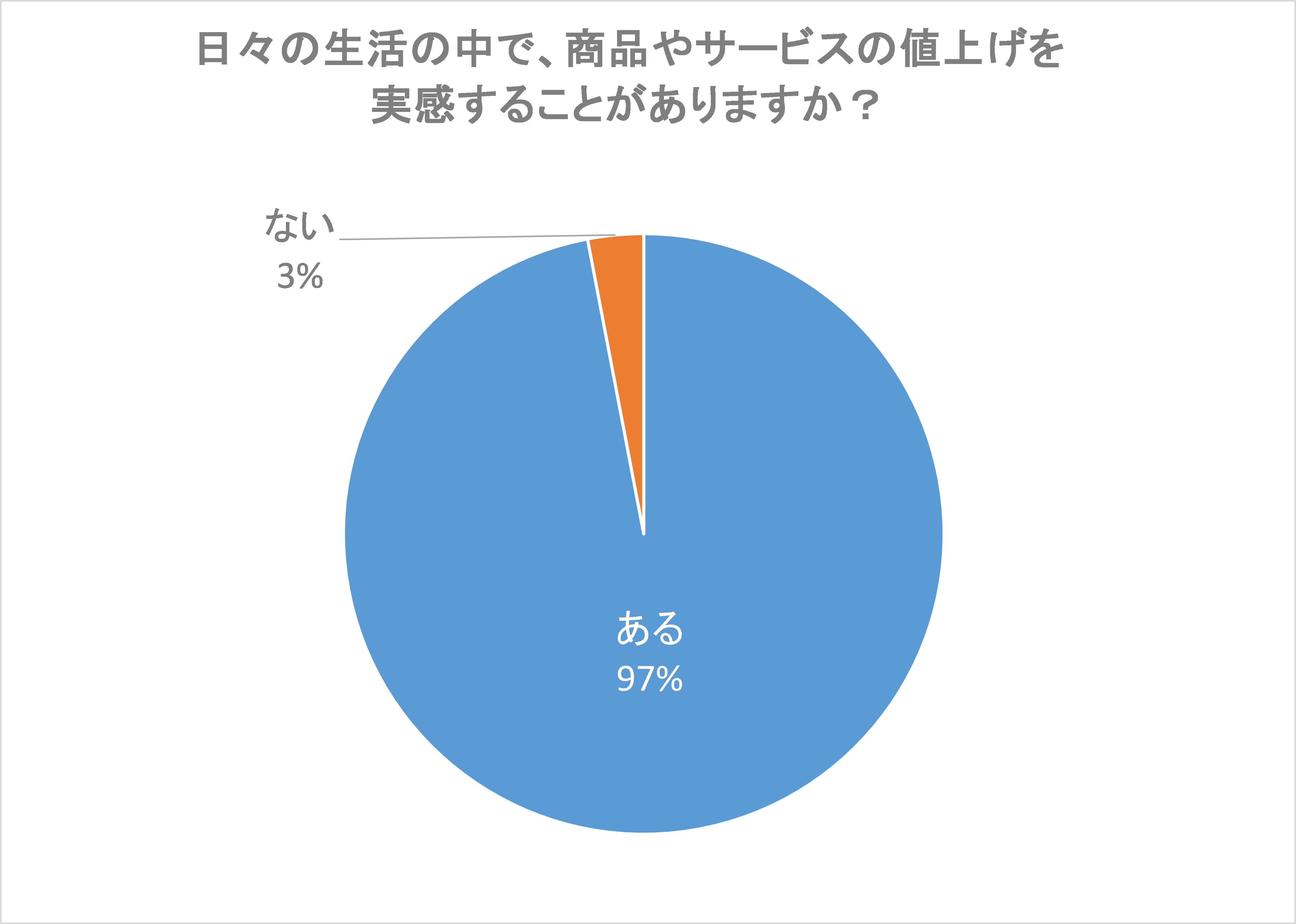 「日々の生活の中で、商品やサービスの値上げを実感することがありますか?」という質問に対して「ある」と回答した人が97%を占める結果となりました。