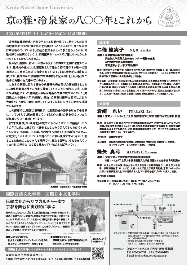 【公開講座2024】「京の雅・冷泉家の八〇〇年とこれから」