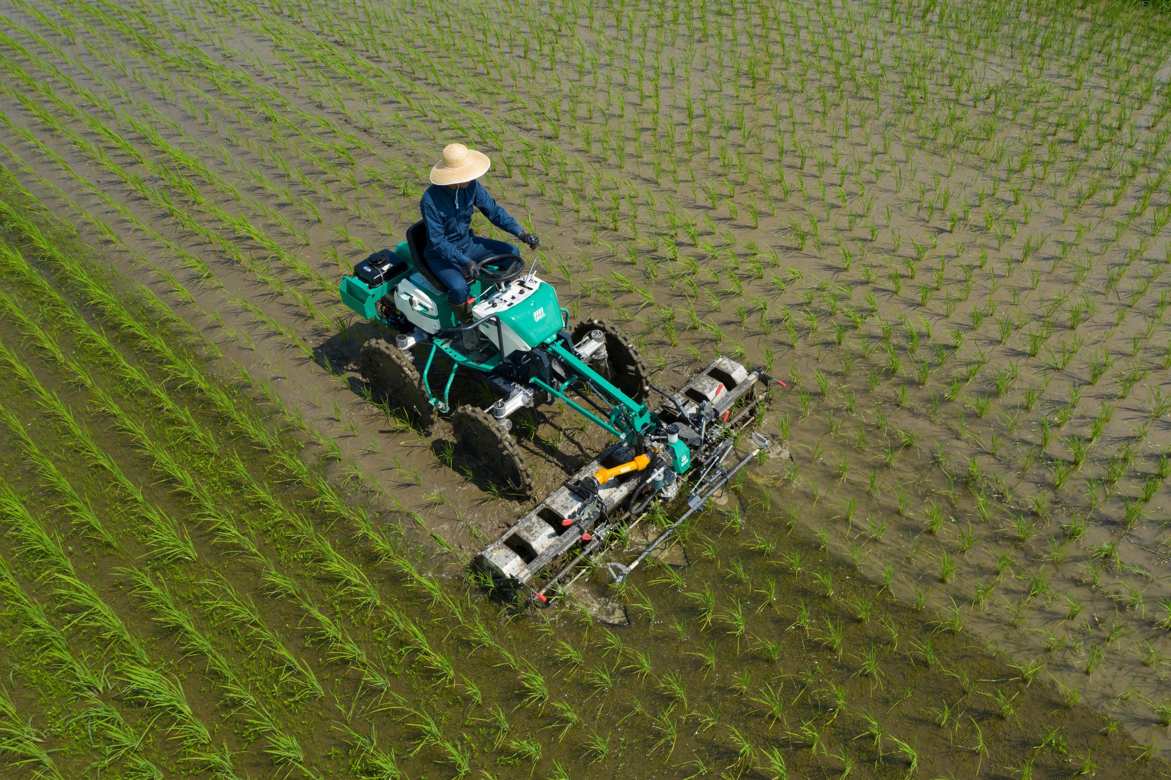 「WEED MAN」は、独自の除草機構を搭載した乗用型の水田除草機です。