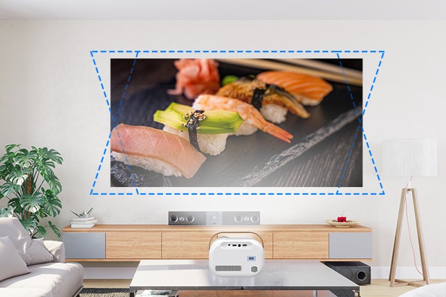 上下40°までの自動台形補正、左右は手動補正に対応しており、さまざまな角度から映像を美しく投影できます。