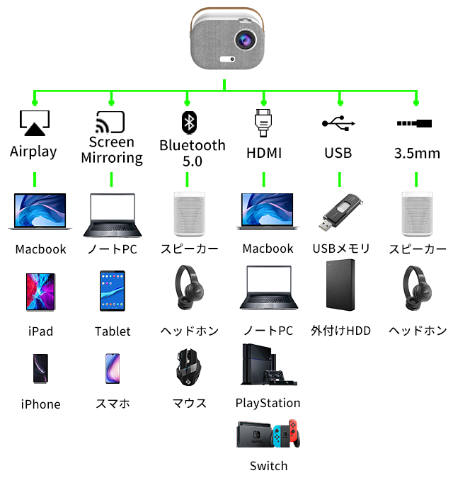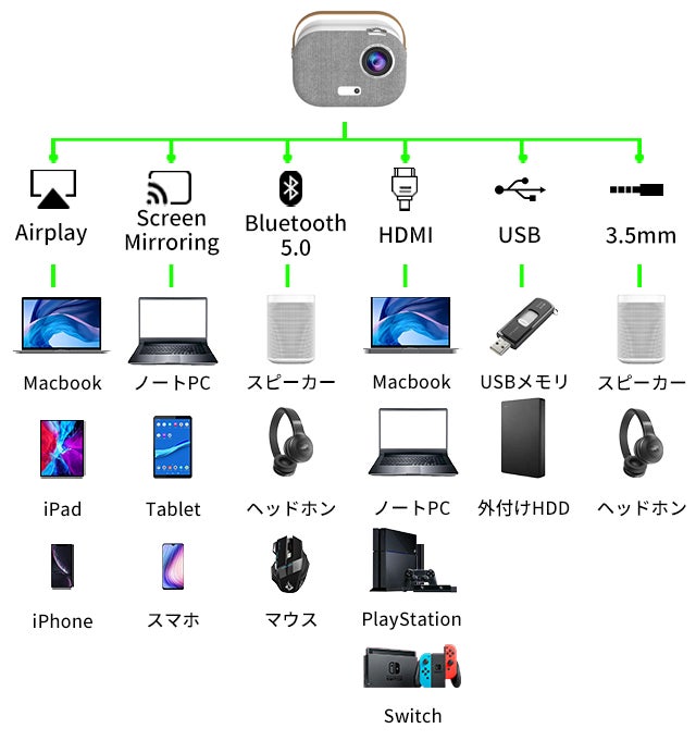 「Q1」とスマホを同じWi-Fiに接続すると、スマホの画面をワイヤレスで投影することが可能です。「Q1」のワイヤレス投影を使えば、会議・授業でプレゼンをしたり、面白いビデオを友達と共有したり、スマホの画面を大きいスクリーンで堪能したりすることが可能になります。