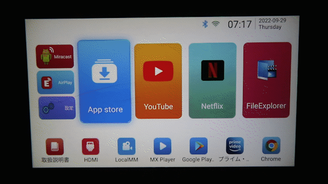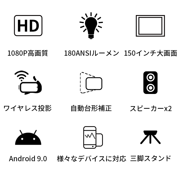 OSとして、「Q1」は動作が安定なスマートシステムAndroid 9.0を採用しています。普通のプロジェクターの枠を超えて、インターネットがある場合は単独でもコンテンツを放映することが可能です。NetflixやYouTubeはもちろん、様々なアプリを大画面で楽しみましょう。