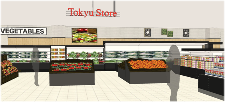 今回の改装では、旬の野菜・果物や鮮魚、銘柄肉など、高品質な生鮮食品の品揃えを充実させるとともに、デリカ部門では、ローストビーフやスモークサーモンを使用した「RICHDELI(リッチデリ)」、鉄板焼きメニュー、店内で焼き上げるベーカリーなど、店内製造の惣菜・お弁当の品揃えを拡充いたします。グロサリー部門では、冷凍食品の売場を拡大し、品揃えを充実させお客さまの食卓を簡単・便利にサポートいたします。また、「東急フードショーセレクト」コーナーをはじめ、輸入菓子やオーガニックワインなど、こだわりの商品も種類豊富に取り揃えます。