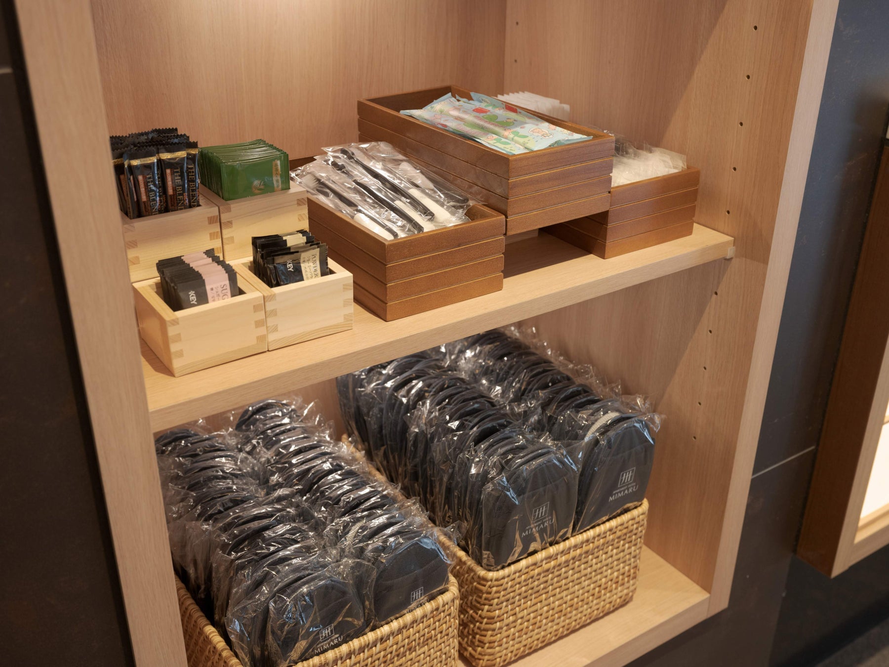 MIMARUでは、地球環境に負荷の少ないホテル運営をめざし、2018年から使い捨てアメニティを客室内に設置せず、ロビーでのバイキング形式で配布していましたが、2023年9月からはロビーに設置していた歯ブラシ等のアメニティ類の配布を終了します。