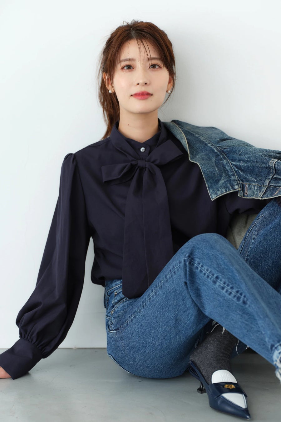 パッと目をひくボウタイブラウスの存在感は華やかでありながら、カジュアルにも洗練されたスタイルにも取り入れられるスマートなアイテム。
