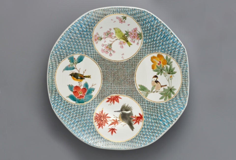 ・山田 義明 氏「飾皿 色絵小紋に四季花鳥図」