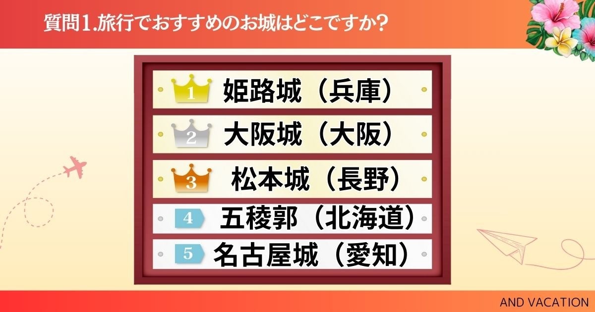そこで、旅行でおすすめのお城をアンケートで聞き取り調査をしました。ぜひ、チェックしてみてください!