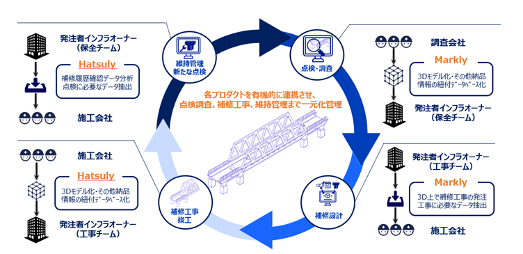 DataLabsは、3Dデータをベースに、点検・調査から補修設計、施工、そして維持管理に至るインフラライフサイクルの新しいあり方を構築する「3D InfraLoop(3Dインフラループ)」を提唱しています。