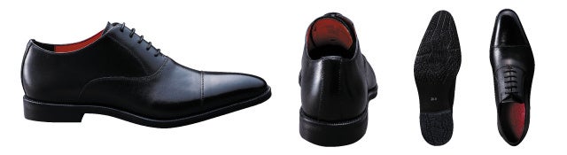 デザインはフォーマルなストレートチップを採用。スッキリとしたフォルムだから、スーツはもちろん冠婚葬祭シーンなど、多方面に活躍できるアイテムに仕上がりました。インソールは、ロゴタイプを素押しした高級感のある仕上がりで、ライニング(裏材)のカラーには“赤黒”を採用。メンズサポーター必携の一足です。
