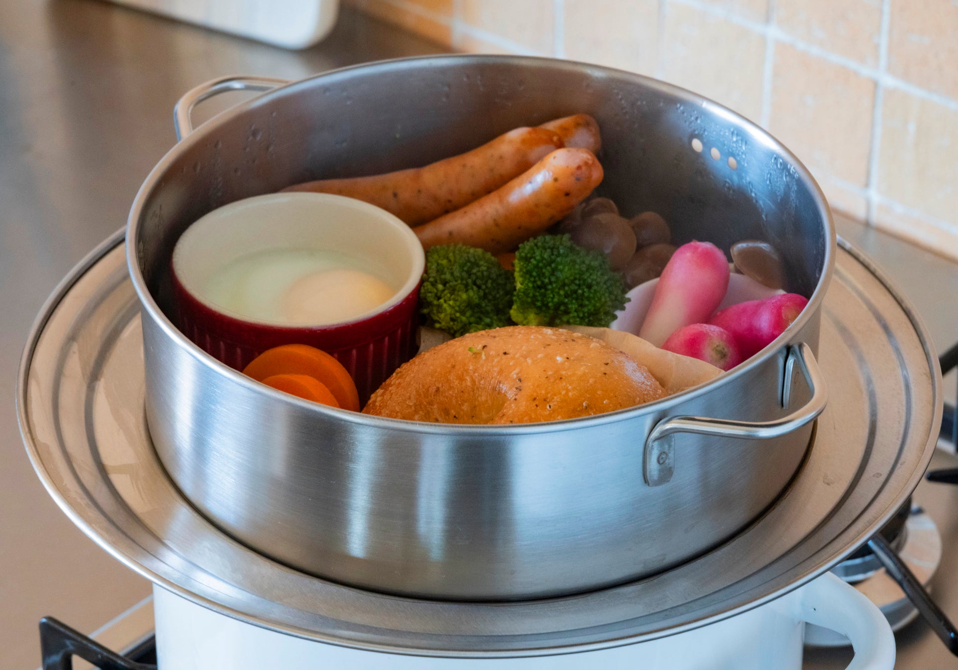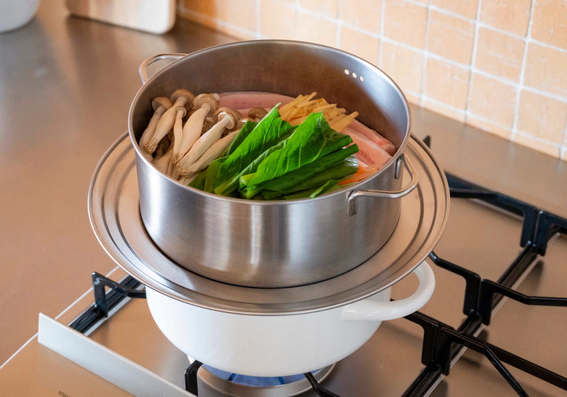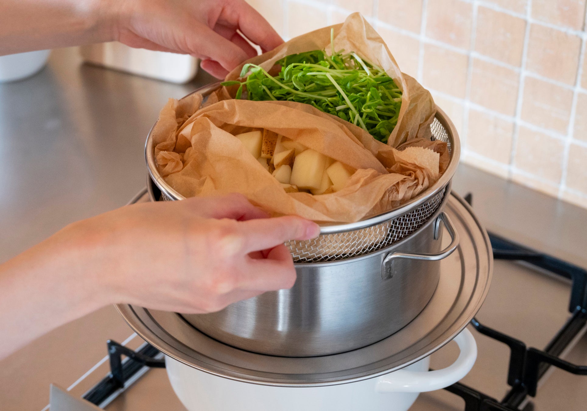 また、蒸しに使った水には食材のうま味がたっぷり凝縮されています。そのままスープやお味噌汁に活用すれば、栄養も風味も逃さずもう一品が完成。「調理しながら次の料理のベースができる」という効率の良さも、毎日の食卓に嬉しいポイントです。