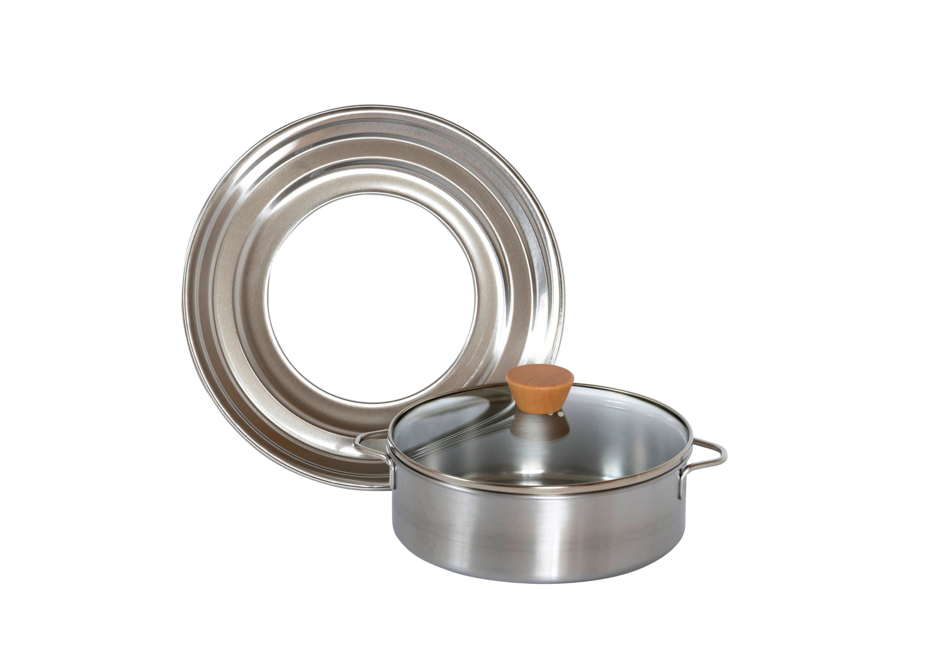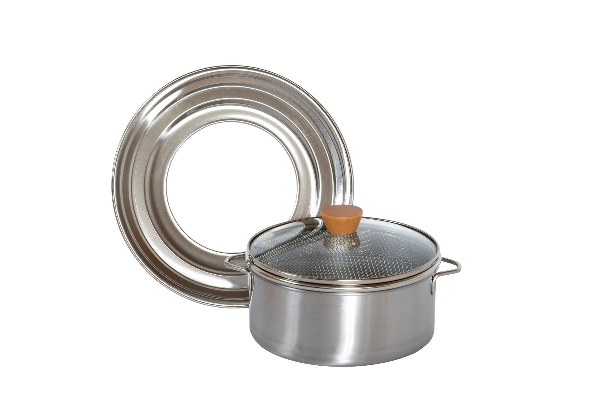専用の仕切り板が鍋のフチにぴったりフィットし、普段使いの鍋やフライパンを蒸し器として活用できます。対応サイズは20~26cmと幅広く、ご家庭にある鍋で気軽に蒸し料理を楽しめます。(※形状により適合しない場合があります)