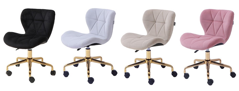 彩度を落とした落ち着いた色調のラインナップです。ゴールド仕上げの脚なのに派手な印象が無いのは、このやわらかな、くすみカラーの効果が大きく、ほどよい華やかさが演出できます。